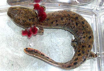 We had a mudpuppy, purchased from a biological supply company, that we used to take our to schools to educate children about wildlife and the environment. On the morning of the program I’d track it down in its tank and corner it. On a good day I could get it in a net. On a bad day, I had to use my hands.