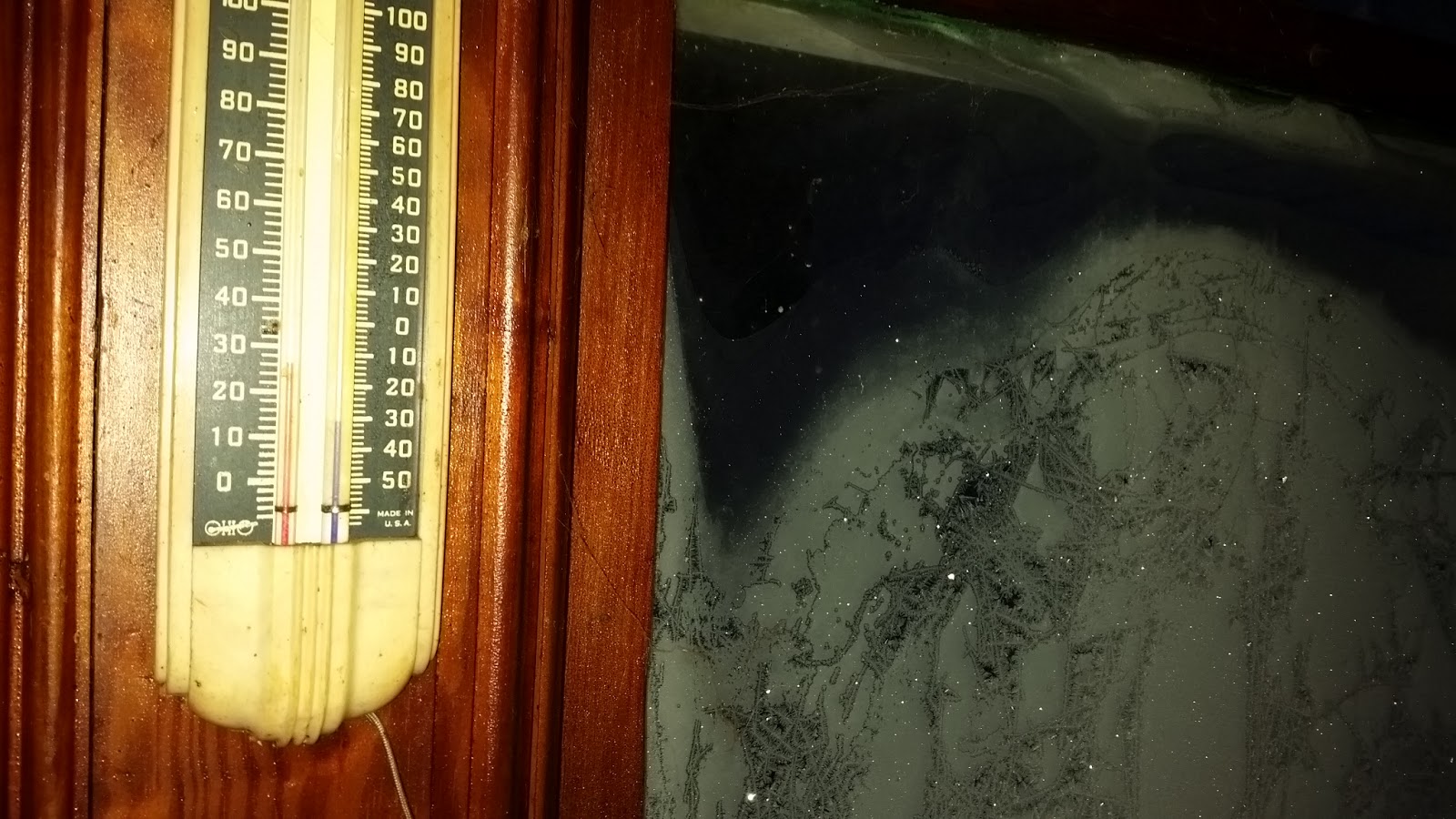 That thermometer is mounted on the window frame in our pantry. It has an outdoor probe. At 6:30 yesterday morning (Sunday) it was thirty below. My dog was actually shivering when I took her outside; I don’t think I’ve ever seen her so cold.