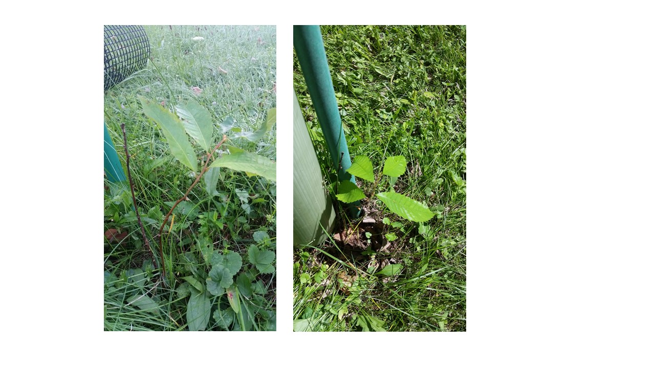 It’s not the greatest photo. On the left is the chestnut today. On the right is how it looked at the beginning of June. Hard to tell from this image, but it is definitely bigger, and while the new main stem is leaning a little, it has actually grown to the point where it is taller than that original main stem (seen on the left side of the leftern picture).